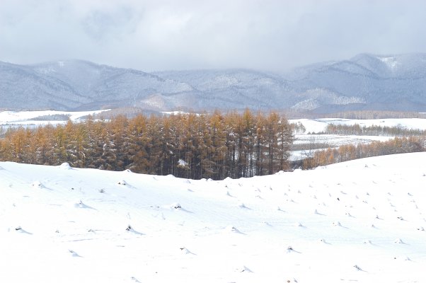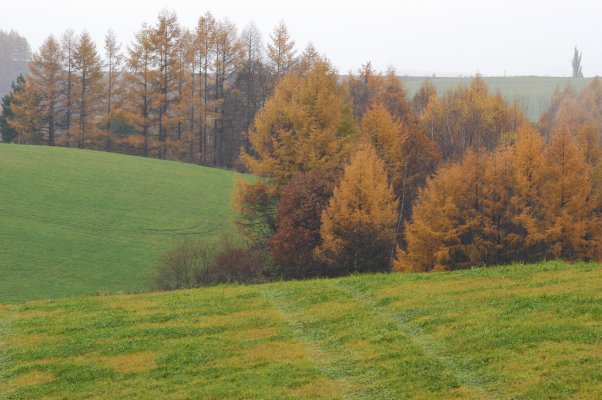 美瑛のカラマツ林は、例年10月中旬頃 |