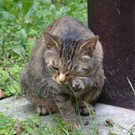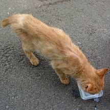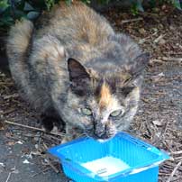 缶詰の魚を食べ終えて、 ぺろ〜り。子猫の頃から 知ってる黒猫です