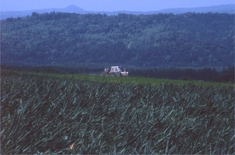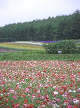 普段は美瑛町と上富良野町あたりをぐるぐる回っているうちに でも、いつも美瑛にミサオをたてているせいか、どうも富良野には 1997年に見に来た時は38℃で快晴!だったんだけど さて、もうちょっと富良野とも仲良くなりたいと思い、宿までとった2002年夏。 |