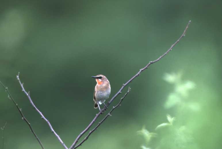 これまたウトナイ湖で撮ったノゴマ。関東ではあまり見られません。 この鳥の鳴き声もまたきれいです。 十人ほどのバードウォッチャーが見守る中、何度か現われて その美声を聴かせてくれました。 | |