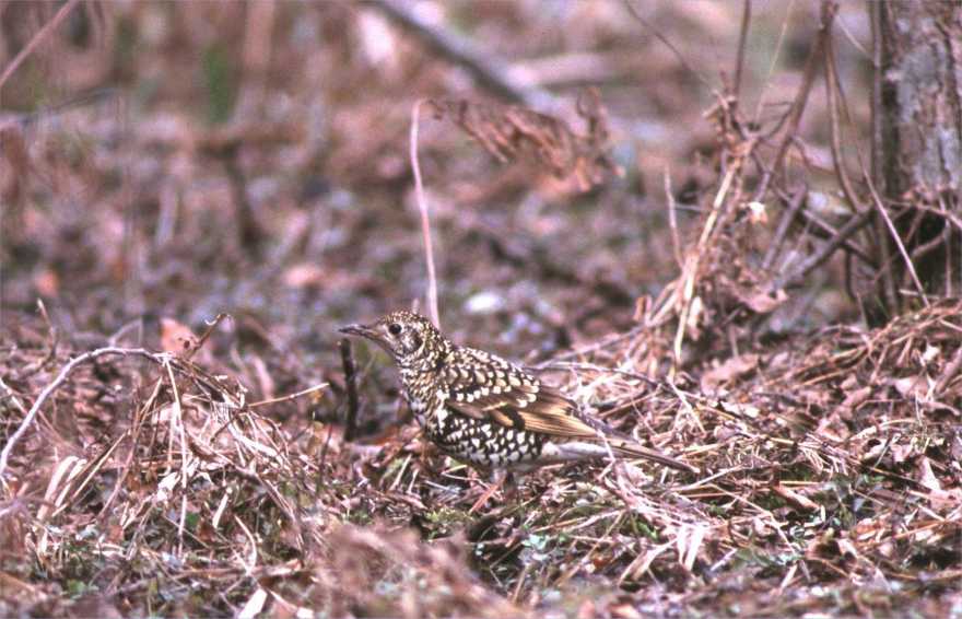 水元公園での最近の人気者、トラツグミ。 トラ模様?ではないようですが、全身の模様がきれいです。 でも、数週間でどこか別のところへ飛んで行ってしまいました。 もっと珍しいハチジョウツグミの写真はこちらです。 | |
