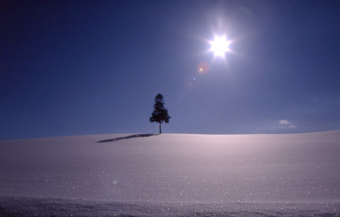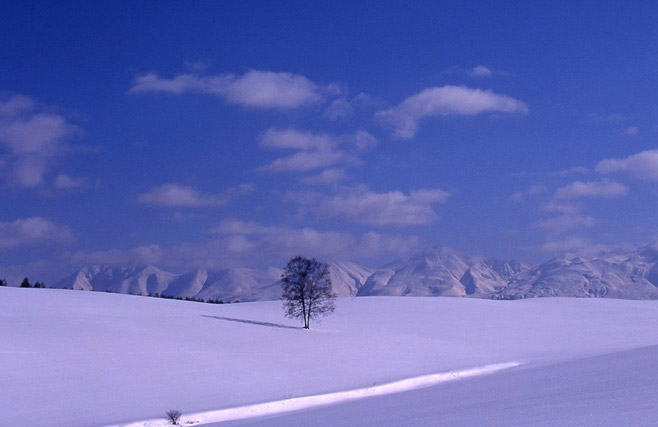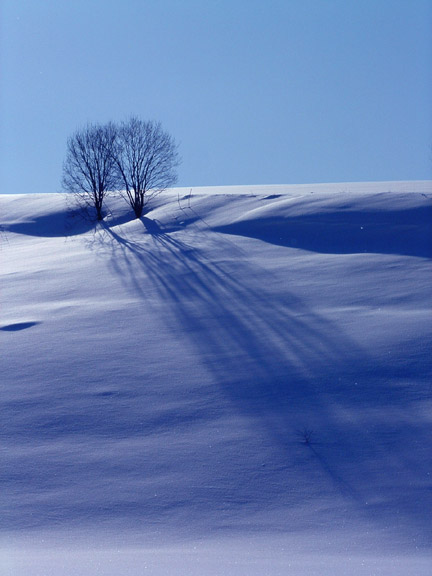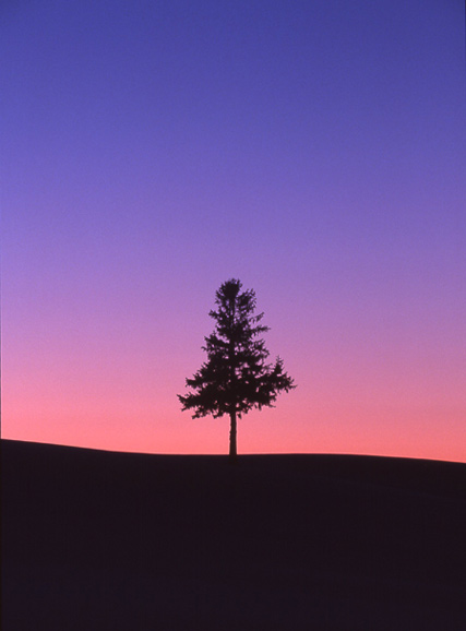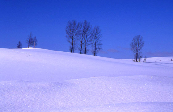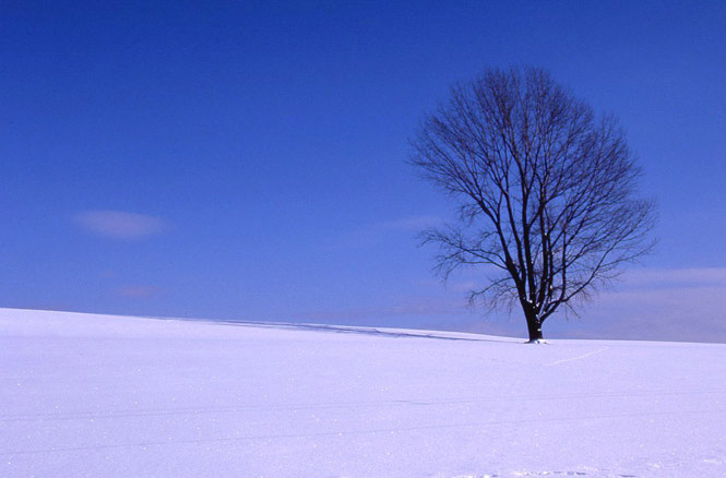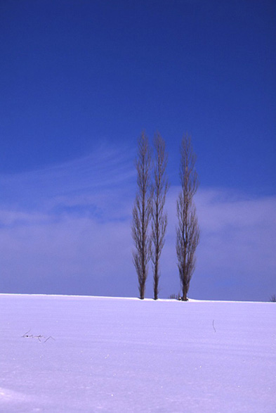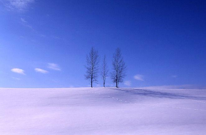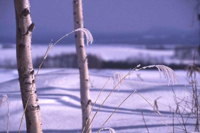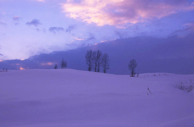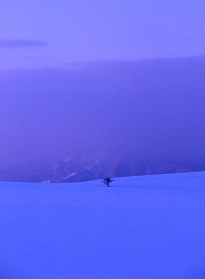 おなじみのカラマツ林。 いつも同じ写真だなあ…とは思いつつも、やはりそのたたずまいの 美しさに敬意を表して載せさせて頂きましょう。 この時は薄日が射す中、小雪が舞っていました この木、小さいです。 小さいから、夏場の畑が色とりどりの時には全く目立ちません。 でも、冬になると「やあっ!」て感じで目の前に現れます。 この先、大きくなることはあるのでしょうか? まあ、また来年の冬に会おうね! 3本の木のうしろにはこんな雲。こういう雲、大好きです。 この木、本当は霧氷で真っ白になっているところを撮りたかったけど こんな背景ならやっぱり撮っちゃいますね。 (次の日の雲はこんな感じでした) 大好きな「りっぱな木」(本名はあくまでも「哲学の木」)。 今回はちょっと良い雲に恵まれなかったり、ピントがぼけてたりで あまり気に入った写真が撮れませんでした(ごめんなさい)。 おわびに次の日の写真もどうぞ! そして、こちらも大好きな白樺の木。 一般的には「絵本の木」と呼ばれていますが、なぜかうちでは 「白樺」と呼んでいます(白樺の木はいっぱいあるのにねぇ…)。 朝と夕方の写真はこちらでたっぷりお楽しみくださいませ 久々(いつ以来かなぁ…?)に登場の、「なかよしの木」 (これも勝手にそう呼んでいるだけですが)。 白樺の木と背中合わせに立っています。 よりそう2本の木の影が長く長く伸びています 今回初登場!…といっても有名な木なんですけどね(笑) 写真集などでよく目にしてはいたのですが、地図を見ないため 今まで遭遇できませんでした。 なだらかな稜線を背にぽつんと立つ木。いい感じですよね この木は夕陽の名所らしいです。 (ほんとに「パッチワークの路」については詳しくないんだな、これが…) 夕映えがだんだんと夕闇に溶け込んでいくのを見守りました 宿へと帰る道すがら、「まだ撮れるかな?」と親子の木へ。 なぜかあんまり撮っていない木なんですが、町の灯?で わずかに見えるシルエットをどうしても撮りたくて頑張りました。 もっときれいに撮りたかったんだけど、私の腕ではこれが限界(泣) ここからは3日目に撮った写真。 だいぶ日も高くなって、霧氷の写真はもう諦めていたのですが ちょっとだけ標高が高い分、三愛の丘の近くにはなんとか 白い木や、こんなススキが残っていました 赤羽の丘のポプラ(他にもあるけど、今回はこの3本)。 スノーシューじゃないと行けない、と噂に聞いていたのですが しっかり除雪されていて、無事こんなすてきな風景に会えました。 この雲、よいタイミングだったなあ… この木が見え始める瞬間の景色はこんな感じです 最後は我々が勝手に呼ぶところの「家族の木」。 最終日、夕方だけ雲が出てしまい「仕方ないなあ…」って思ったら なぜかこの方角だけ雲が切れて、あかね雲がありました。 (青空の下での写真はこちらです)
