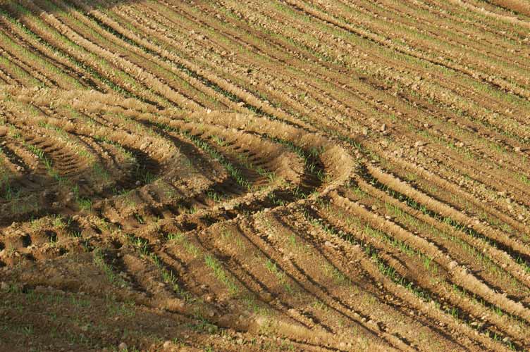 遠目に轍が見えたので、苗はどのように植えられているのか