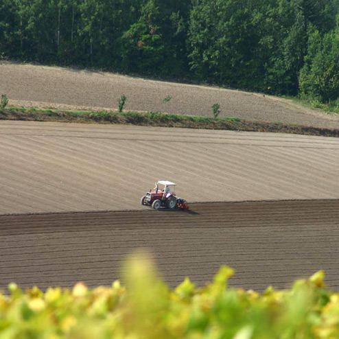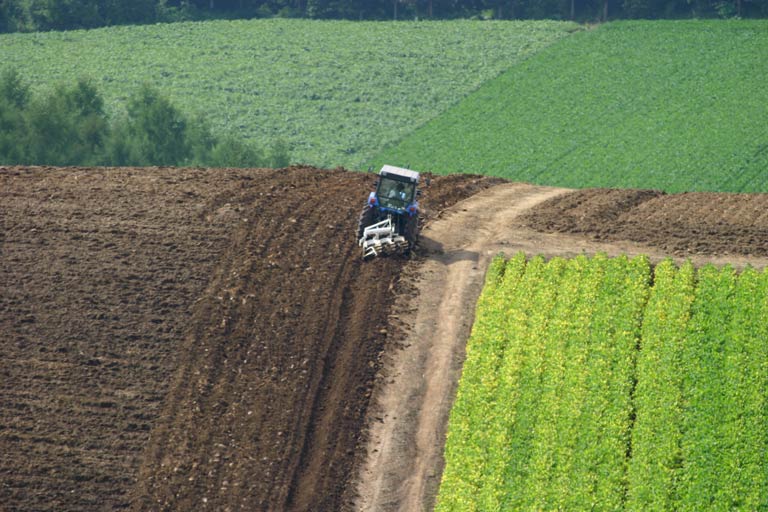 すでに収穫が終わり、新たな作物が植えられている畑や