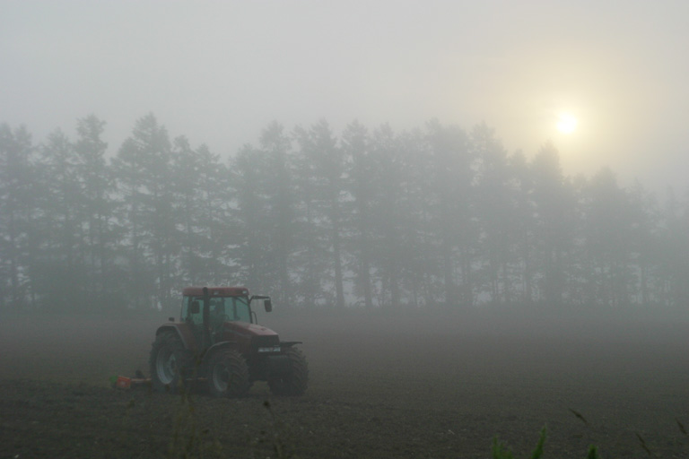 朝霧がきれいな紗をかけて、すてきな風景になっていました