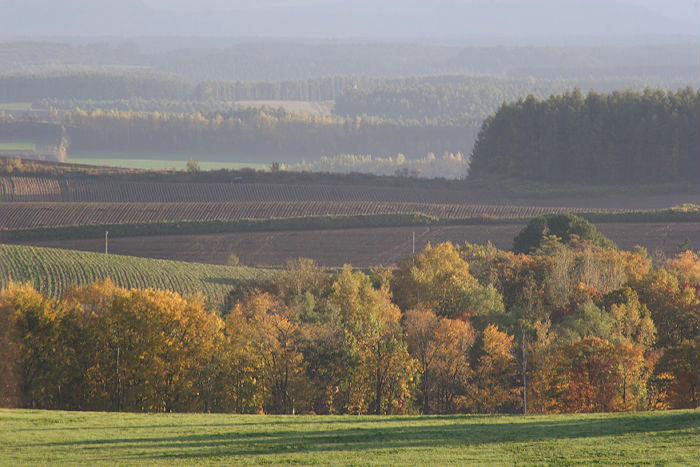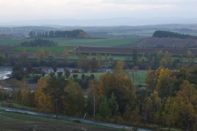 ようやく美瑛に着きましたが、まずは山頭火さんでラーメンを食べ 同じく拓真館のお庭の桜の木。 四季彩の丘に行ってみました。 夕焼けは全く期待できないので、白金方面に行ってみることにしました。 さて、日曜日の朝です。 「りっぱな木(哲学の木)」と朝陽の写真は諦めて、千代田方面へ移動。 上空はこんなにきれいなのに、太陽がなかなか出てきません。 千代田の丘に来ました。ぼやーんとした風景が広がっています。 同じく千代田の丘から、水沢ダムのあたりを撮りました。 6時44分過ぎ、ようやく待望の太陽が雲の上に顔を出しました。 日の出からの経過時間の関係なのか、上空に雲がないせいなのか 丘の下からふと目線を転じると、すぐそばでも白樺の木が 今回は2年前のように、強いスポットライトがいろんなところを