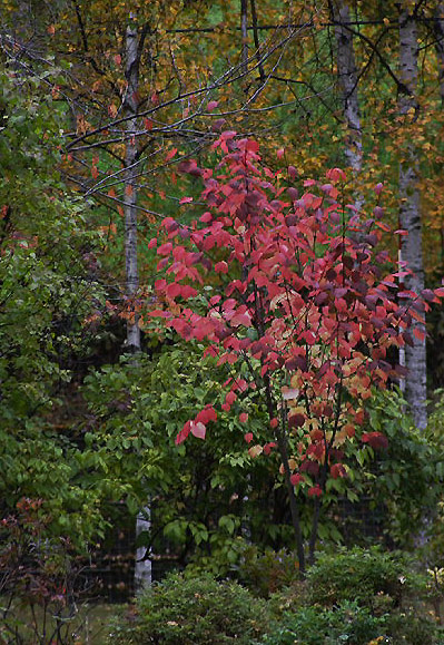 葉っぱがオレンジ色ではなく、こんな風に真っ赤になる木もあります。