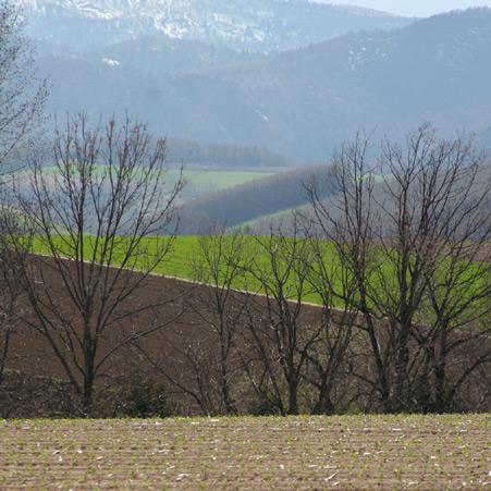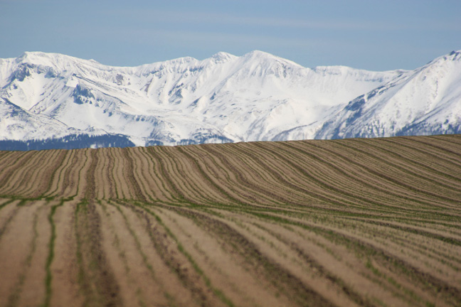 畑の畝と、その向こうの山々を大迫力で?撮ってみました