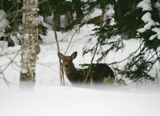 白金方面へ向かう途中、白樺街道の林にエゾシカを発見。