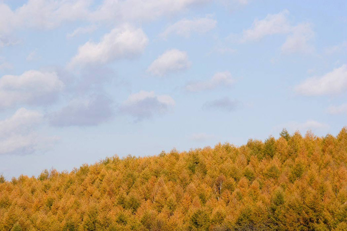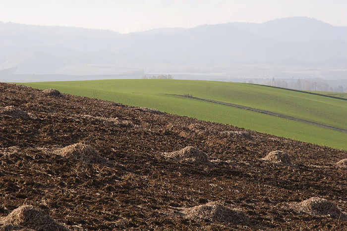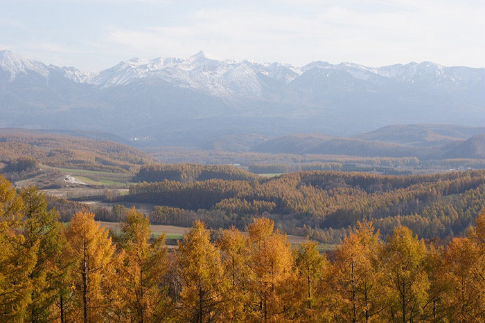 秋のよく晴れた日には、カラマツの黄葉が輝きます。 お天気が良いので、久々に藤野の方まで足を伸ばしてみました。 「りっぱな木(哲学の木)」も青空の下、気持ちよさそうです。 白樺さんには、5月に訪れた時と同じような光の帯。 地面の緑の色の違いが秋を感じさせます。 後ろの雪山の感じは似ていて、不思議ですけどね 十勝岳にも雪が積もり始めています。 逆光で、なんだかピカピカ磨いたみたいに光っていました 収穫の終わった畑。 藤野方面を回って、美瑛に戻る途中では こちらに山と積まれているのがビート。 丘の斜面に作られた広い畑でひとりぼっちの農作業。 農作業の写真はやっぱり好きです。 だいぶ夕方っぽくなってきました。
