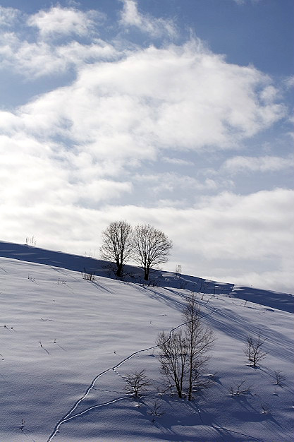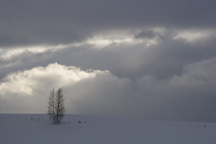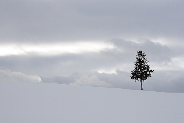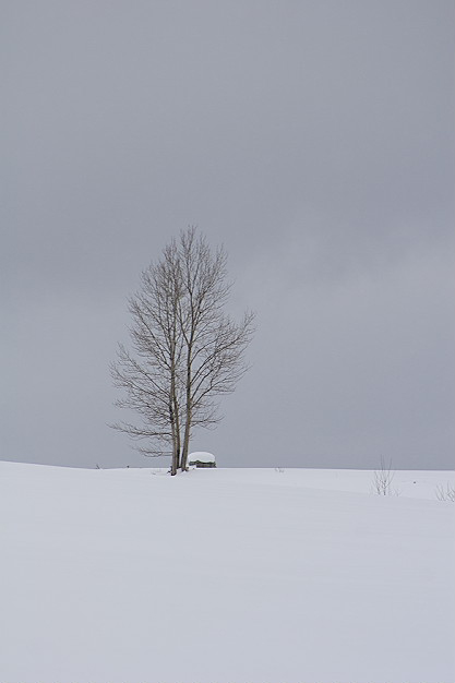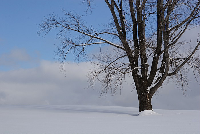 この木は去年も撮りました。空と雪の色によっても感じが違ってきますね