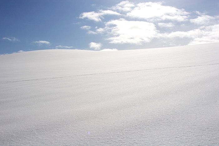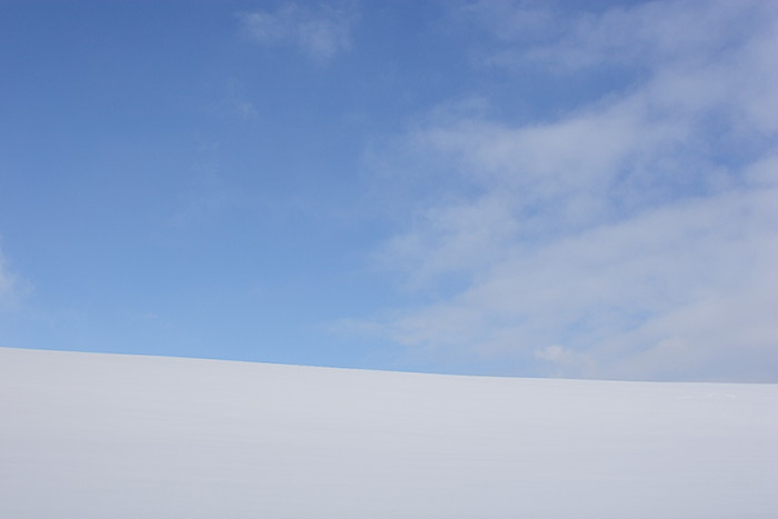 きれいな色の空と、明るい水色になった雪が印象的でした。
