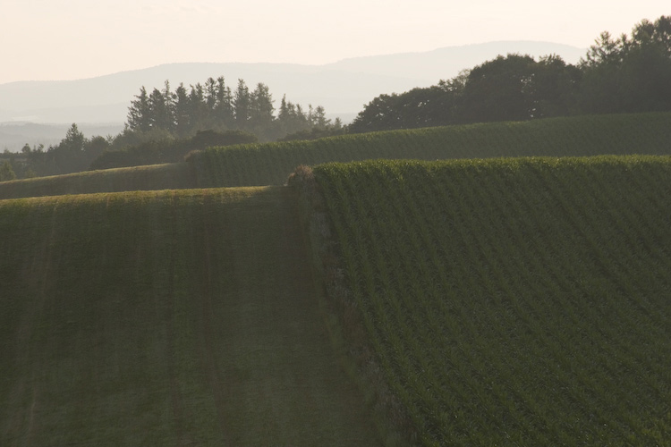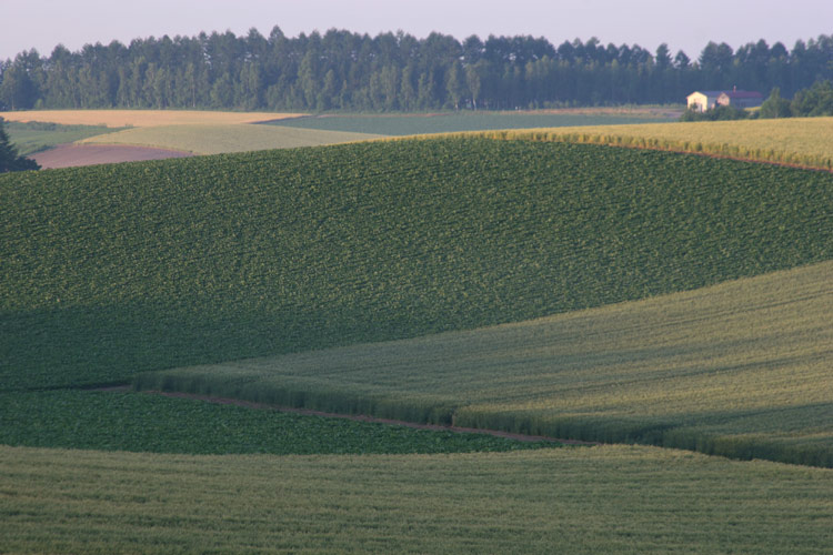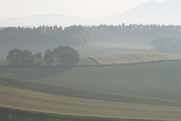 朝の光の中、うねった畑の稜線がとてもきれいでした。