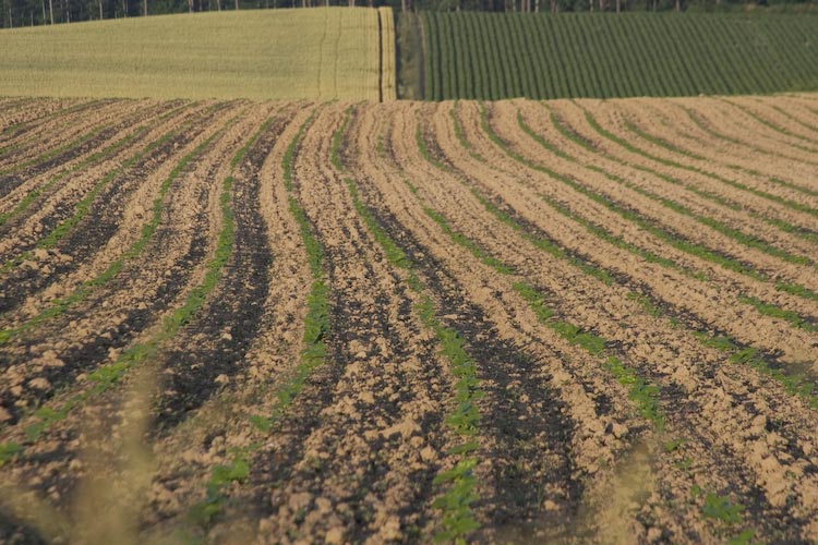 植えられたばかりの苗(豆かな?)の描く緑色の直線もいろいろあって