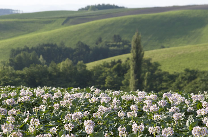 どれがメインかよくわからない… じゃがいも畑・麦畑。 夏の風景ギャラリー |