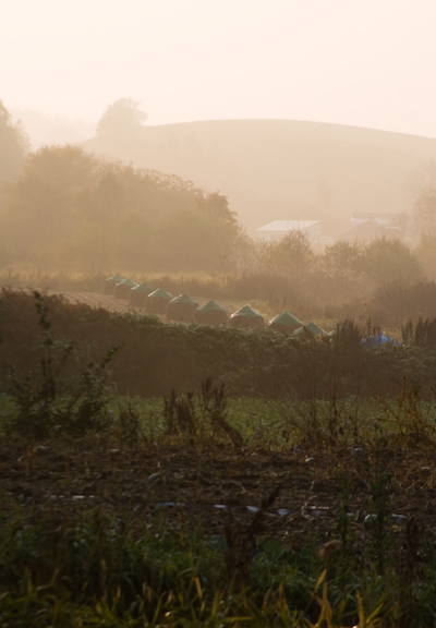 翌朝、朝霧の中の同じ畑の風景はこちらです
