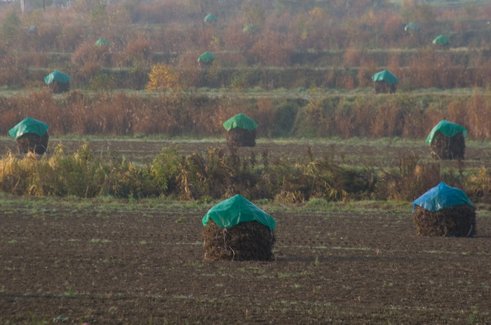 (ニオとは、収穫した大豆を乾かすために積み上げているものです)