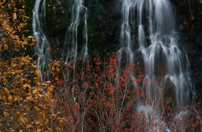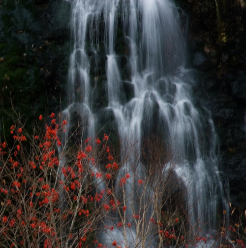 おなじみの「白ひげの滝」とナナカマドを一緒に撮れるアングルを発見。