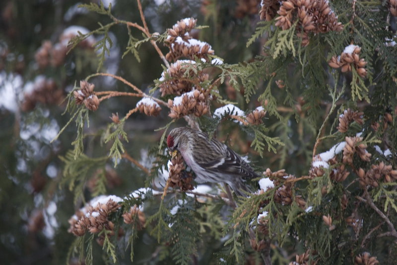 こちらが♂。赤いですね。 杉の実を食べてました |