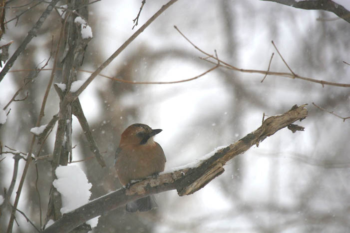 | 雪見ミヤマカケスさん。 ちょっと渋いです |