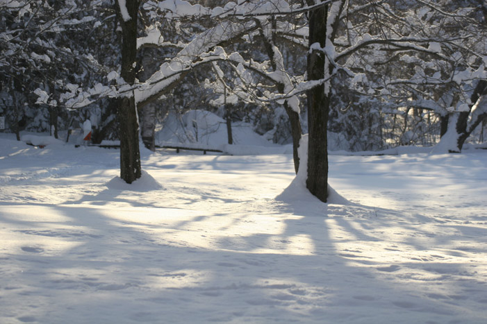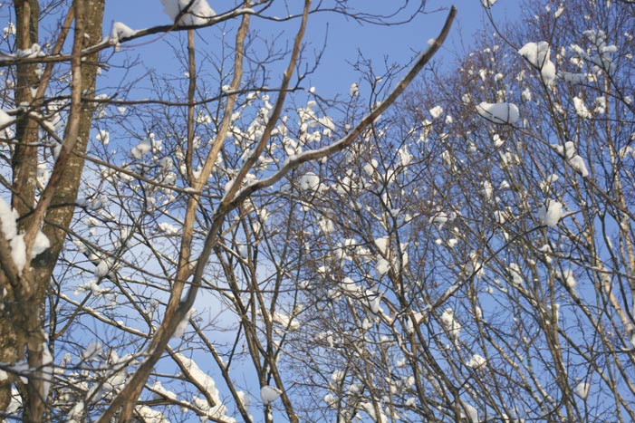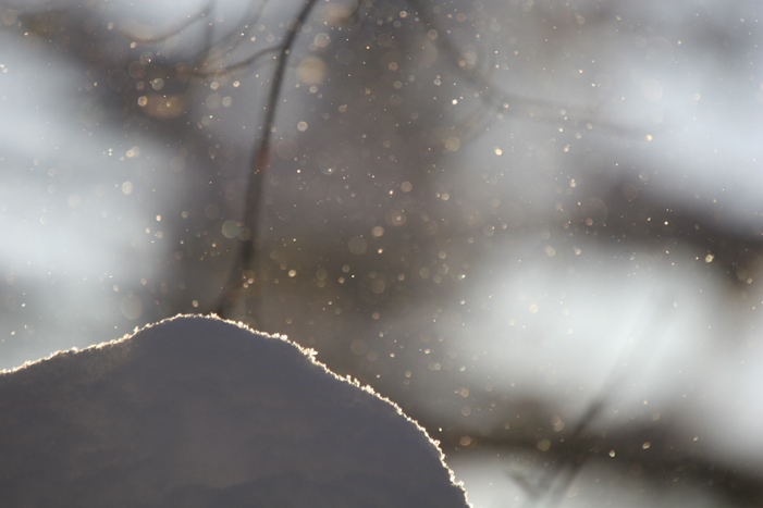 枝から雪が落ちてきます。 キラキラしてきれい |