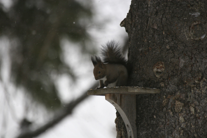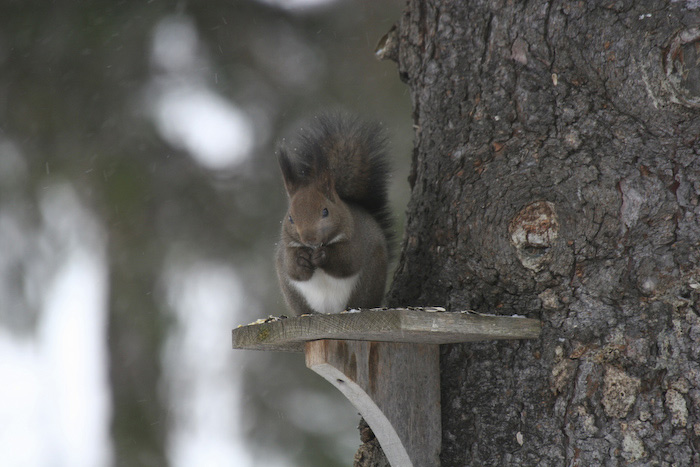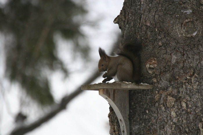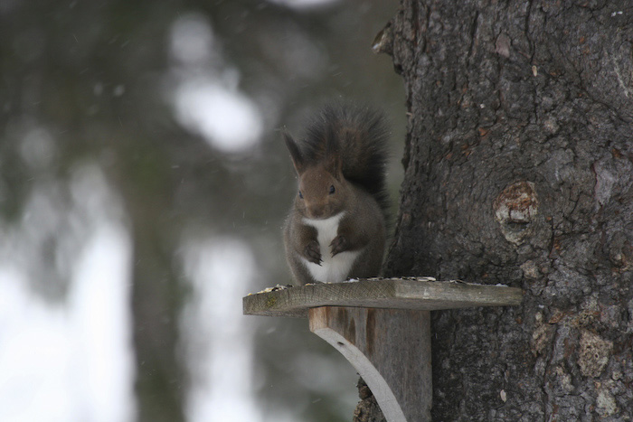 エゾリスです。 このペンションに毎朝、 朝ごはんを食べに来ます |