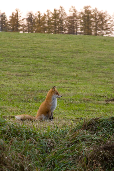 | 上の写真のキツネさんは、その後逃げることもなく ちゃんとカメラの前でポーズを撮ってくれました。 うーん、美しい横顔だわあ… こんなにサービスの良い子も珍しいです |