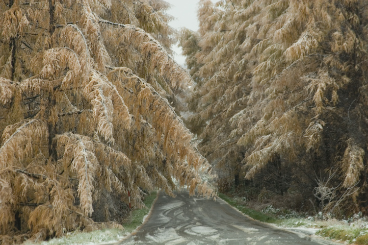 まだ残っている葉っぱに雪が積もっている右の写真はさすがに辛そうです。