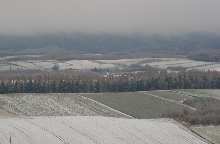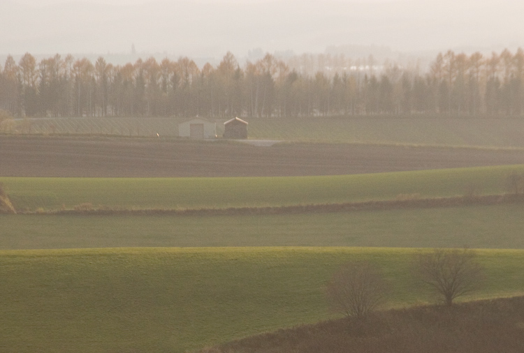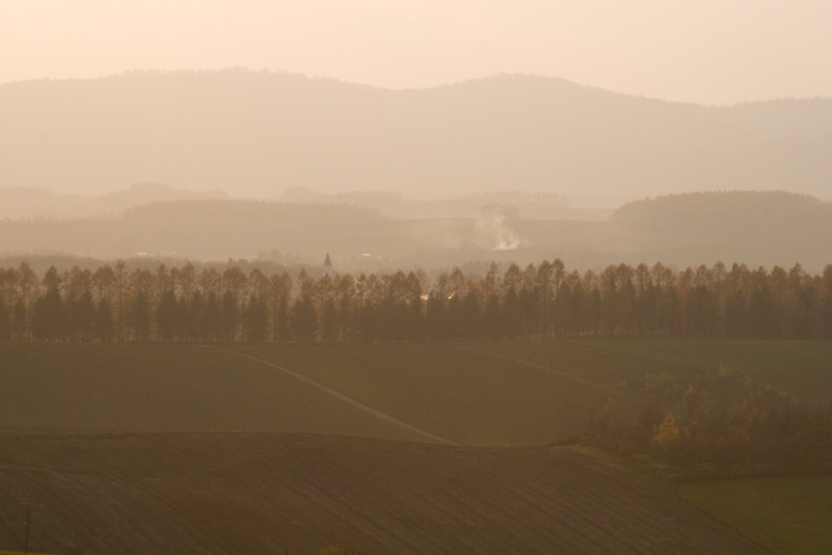 初日の夕方は畑からの煙で白くかすみ、温かな感じですが