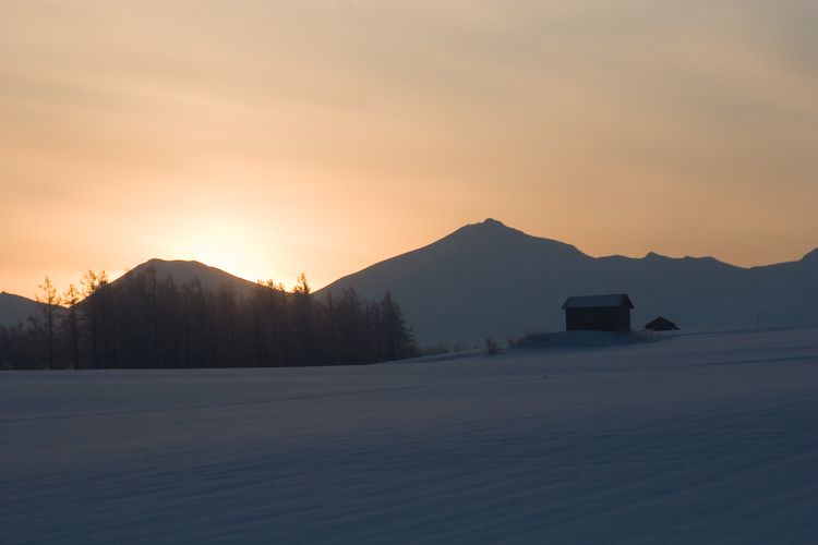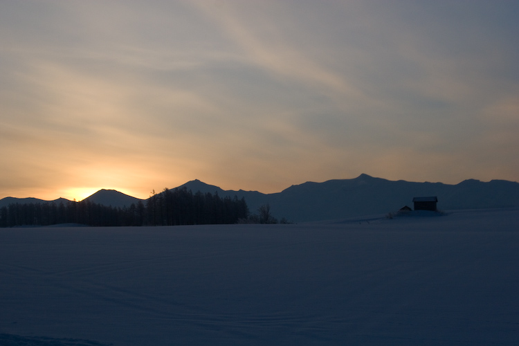 2日目の朝に撮った写真を集めてみました。 この後、ミルク状の霧が出てきたんですが、それもまた風情がありました。 気温は相当低かったけれど、太陽を待つ気分は最高。 さらに日が昇ります。 美馬牛の丘からの眺め。 ちょっと角度を変えて、朝陽の方向をみると もやがさらに一面に立ち込めてきました。