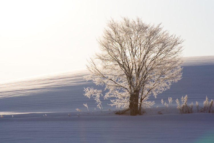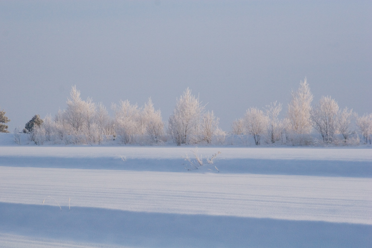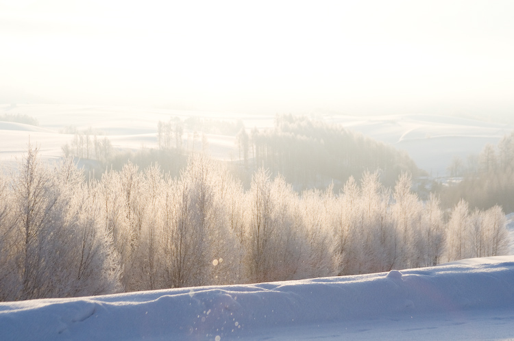 雪の色と、真っ白なカラマツ林がきれいだった1枚。