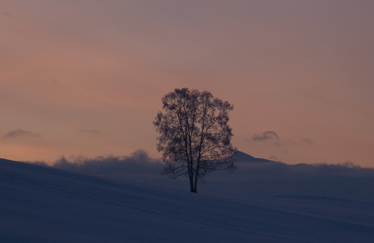 美馬牛の丘へ続く大きなカーブの途中にあるこの木は