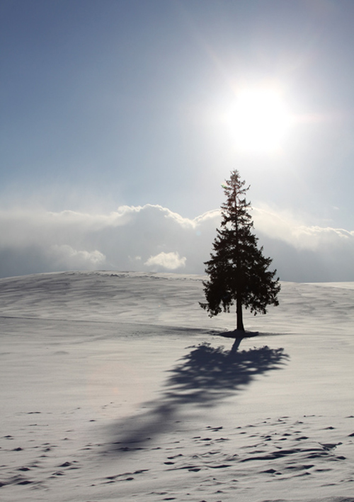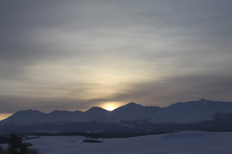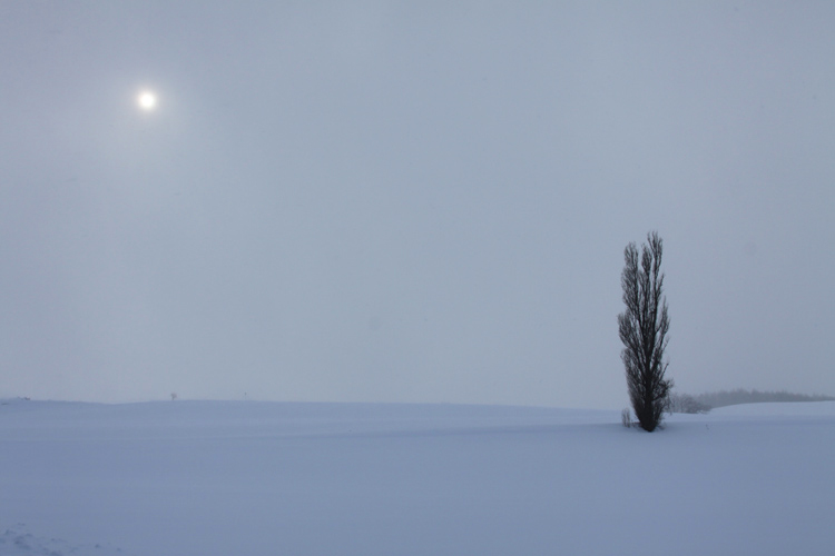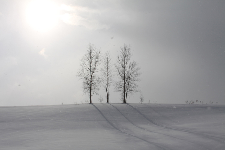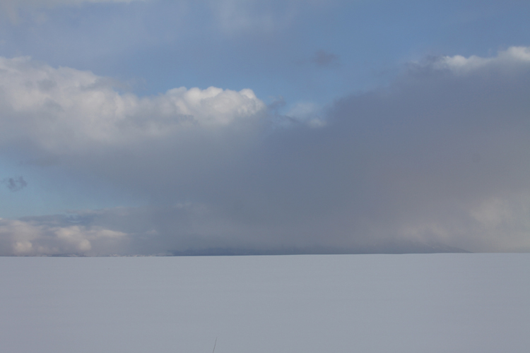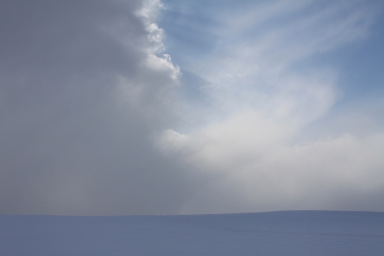 青空が出てると思って5分ほど車を走らせていると雪が降ってくる。