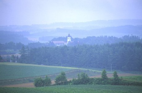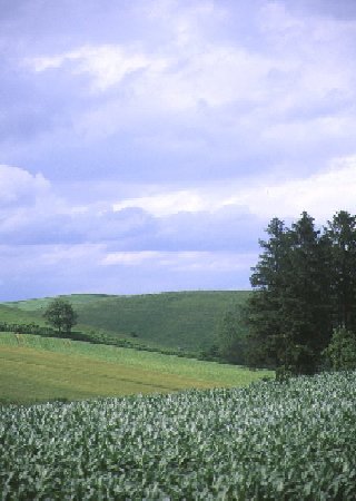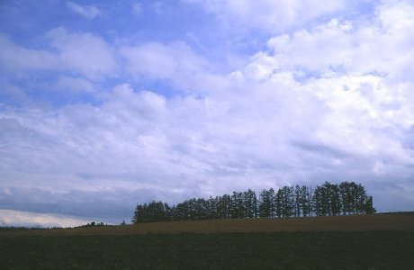 写真をクリックすると大きくなります 美瑛に行くと、まず最初に立ち寄るのがここ。尊敬してやまない前田真三さんもおっしゃっているのですが、美瑛の美しい風景は農作業をしていらっしゃる方々努力の賜物。そんな感謝の気持ちを忘れずにいなければ…と思います。 マイルドセブンの丘から見えた丘。手前の緑がきらきら波打っていて、とってもきれいだったのですが…うまく伝えられないものですね(残念!)一瞬だけ雲が切れて、日が射した時に撮りました。 マイルドセブンの丘の落葉松。一瞬の青空をありがとう!って感じです。「赤麦」の畑を撮りたくて探し回ったのですが、数日前に刈ってしまったらしく残念でした。また来年がんばるぞー! 2日目も雨(もっとひどかったかも…)。仕方ないから、「歩人(ほびっと)」さんの手作りソーセージ(とってもおいしいです)を買って帰ろう、と走っている時にみつけた風景。ちなみに札幌に帰ったら青空でした。…なんでさ? 嵐の美馬牛小学校。この雲の下だと、いつもとは全然違う雰囲気になりますね。 前田真三さんに憧れて、塔が見える高台を探しました。見つけた時の嬉しさといったら…。これから、いろんな季節の、いろんな時間の、いろんな天候での写真を撮っていきたいものです。 撮影日 1999.7.24−25使用カメラ:EOS5