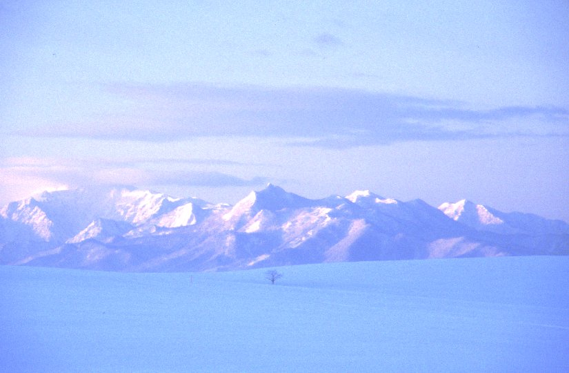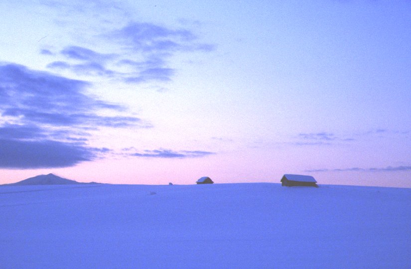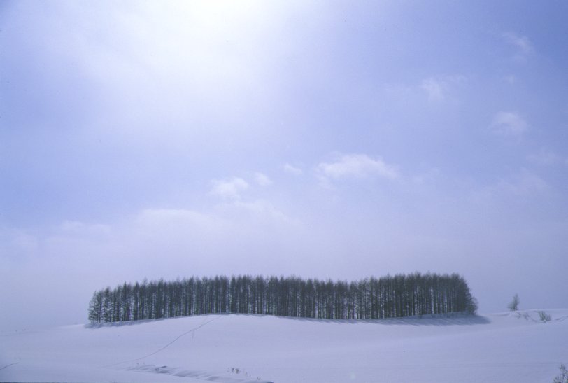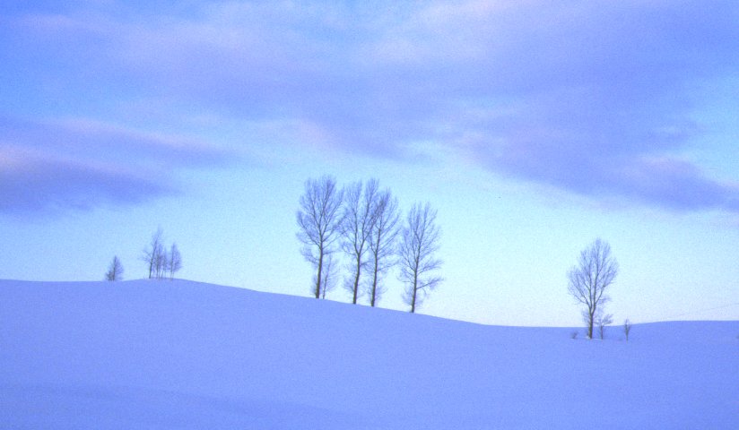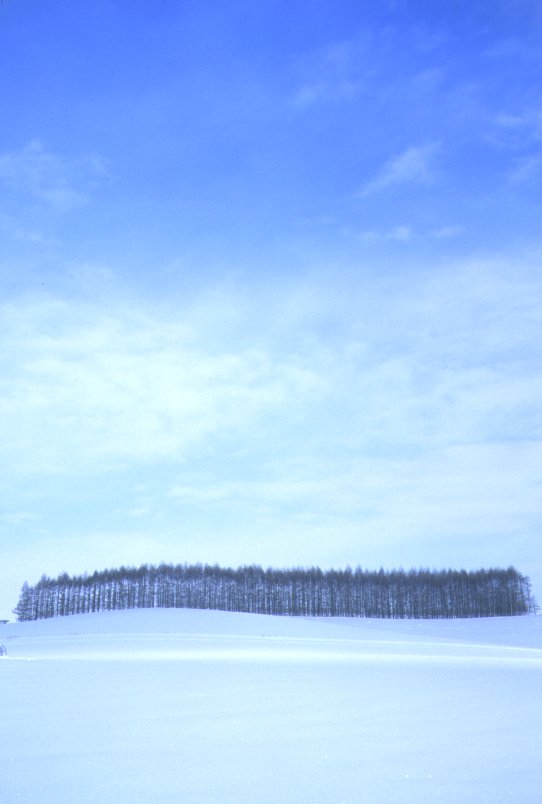 白い木と青い空がとても気持ちよかったので、 つい前田真三さんの真似っこをして、美馬牛小学校も一緒に 撮ってみました。(でも全然違うんだよなあ、これが…) この写真を撮るために、30cmくらい積もっていた新雪をズブズブ。 きれいな写真を撮るぞー!って思っている間は冷たく感じない ものなんですねー。 |