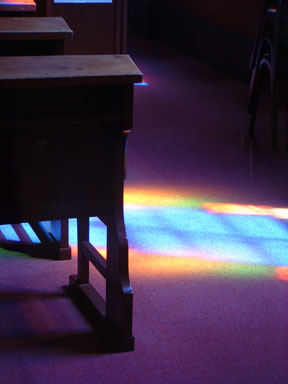 扉が少しだけ開いていたので 中をのぞかせていただきました。 中にはどなたもいらっしゃいません。 内部は撮らせていただいてよいものか さんざん迷ったあげく でもやっぱりどうしても撮りたかったので 募金箱に募金して、一礼して 撮らせていただきました。 ありがとうございました。 ステンドグラス越しの光がきれいでした *桜の花と一緒に撮った写真はこちら
